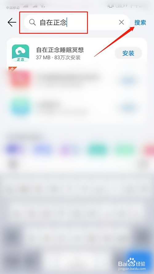 2、然后,点击应用市场上方的搜索栏,在里面输入“自在正念”,点击搜索。