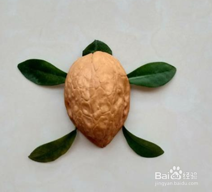 幼儿简单又漂亮手工贴画制作图片 用核桃和树叶DIY乌龟方法