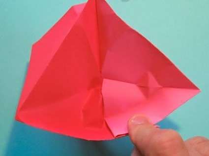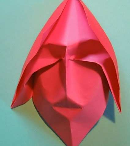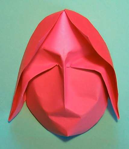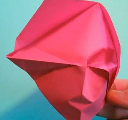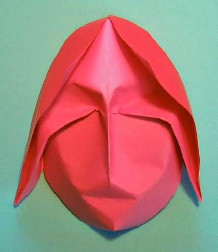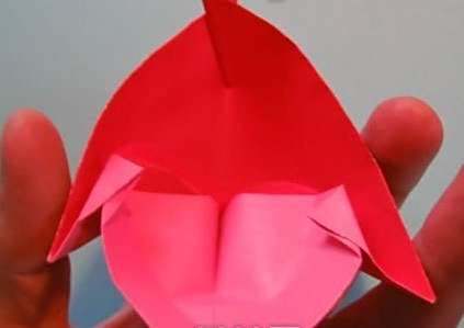 17简单还原之后,将折纸模型竖正,然后用手指按压出如图所示的眼睛部分。