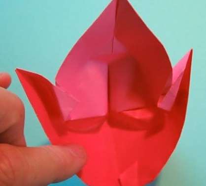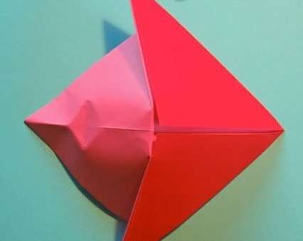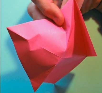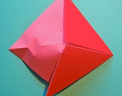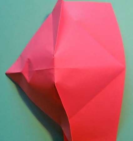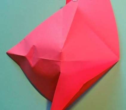 23再将整个朝内回折。这里的折纸图示展示的是背面的样式,只是图示旋转了180°,需要折纸爱好者注意。