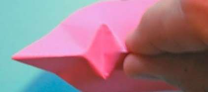 15将折纸模型的上半部分右边向左边拉折,如图所示。