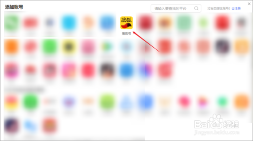 点击“搜狐号”。点击“添加账号”后,会跳转出一个自媒体平台的页面弹窗,有很多的自媒体平台,这些都是可以添加账号管理的,选择好要管理的平台即可。