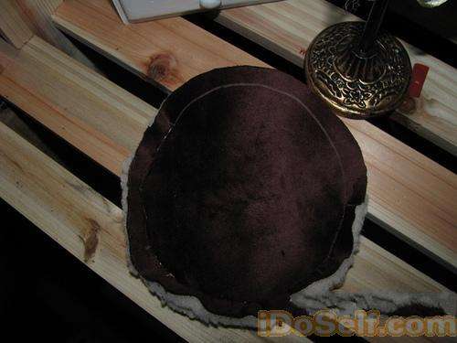毛绒布和花布正面相对,缝合圆弧的一面,直线部分不缝。