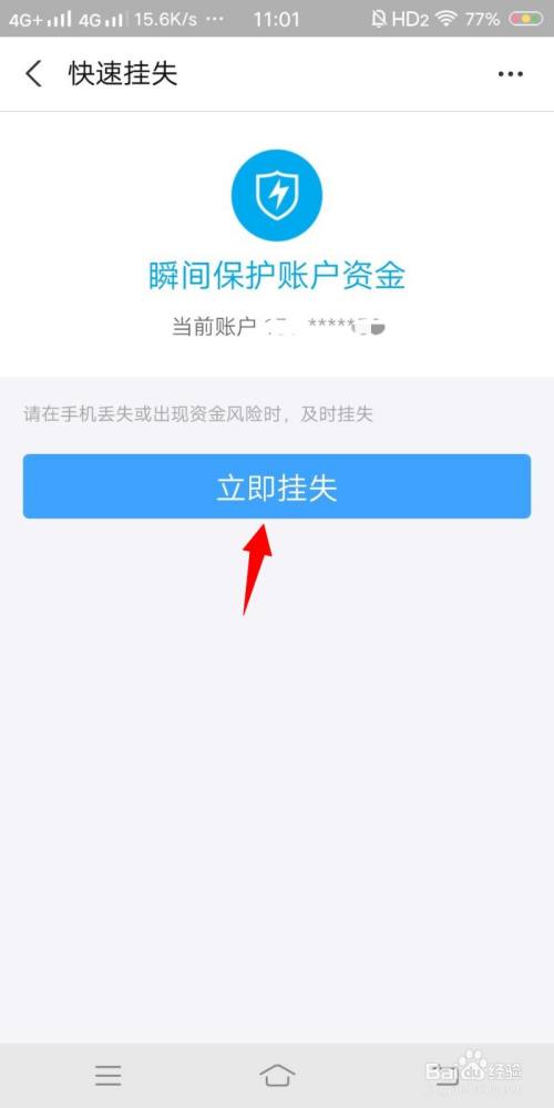 最后,我们点击【立即挂失】。这时我们马上联系人工服务,跟客服说明情况。