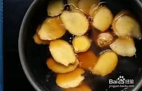 锅中倒入适量可乐,将生姜放入可乐中,煮开;