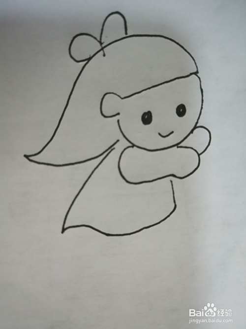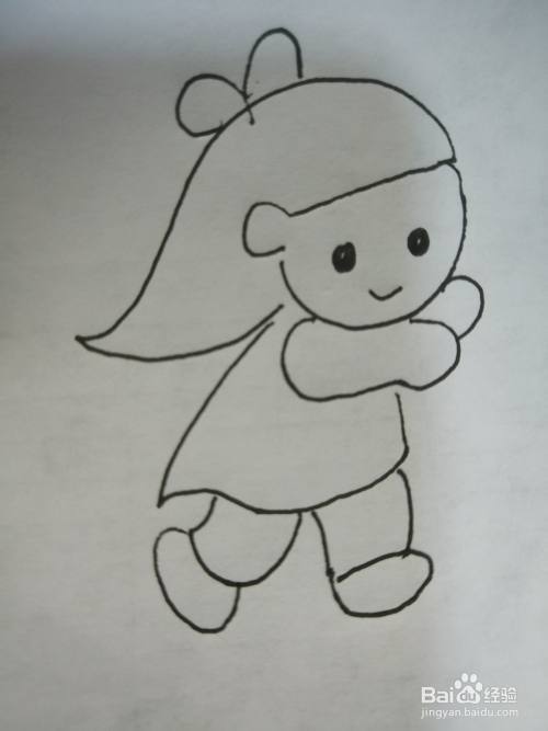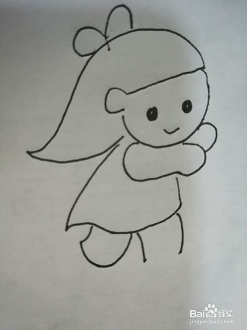 第六步,接着继续画出可爱的小女孩的身体和两只手臂。