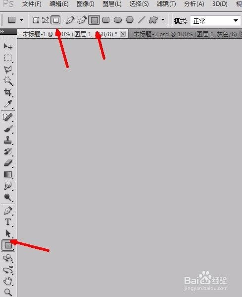 将这个文档另存为新的文档,并保存为psd格式;回到第一个文档的图层面板,新建一层,并选择矩形工具,设置如下