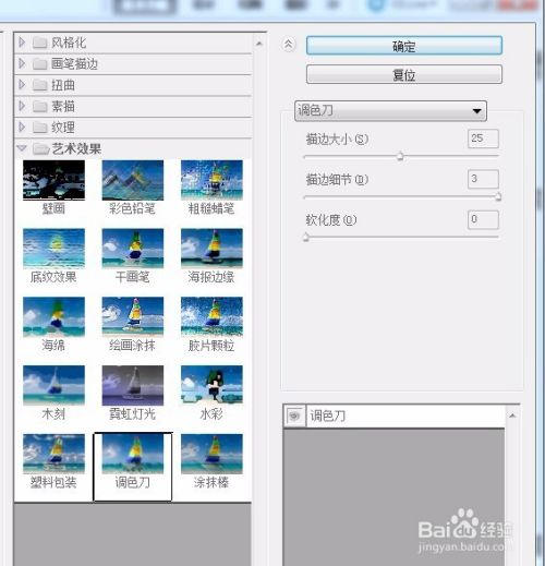 执行滤镜--滤镜库--艺术效果--调色刀命令,设置如下