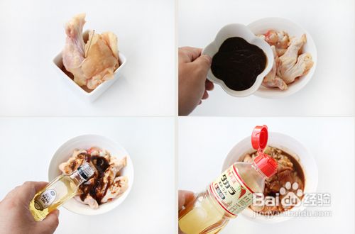 鸡翅根洗净,用牙签在鸡翅根上扎一些小孔,然后加入黑胡椒汁拌匀后,淋少许植物油与味淋(选用)腌制30分钟以上。