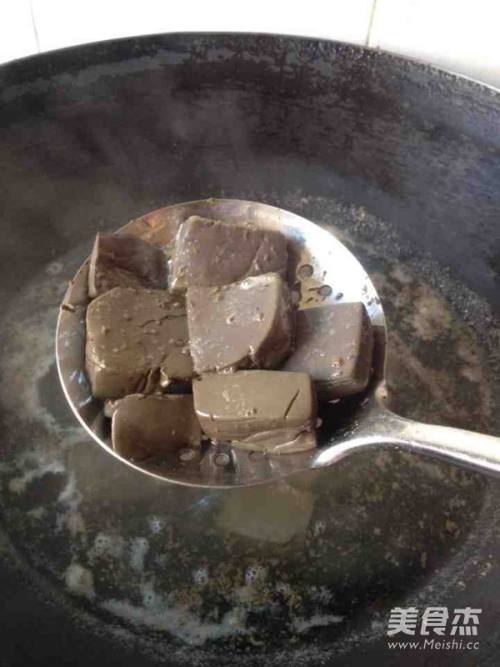 把羊血放到开水烫熟
