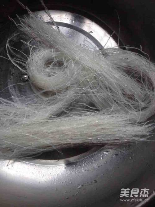 粉丝泡发,韭菜切段