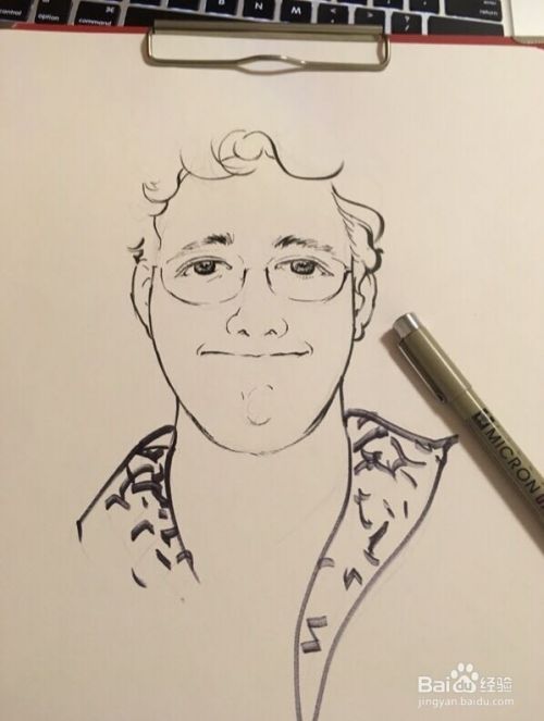 首先这个白人男孩其实有点胖胖的,但是他的脸不怎么显胖,那么呢,我还是会稍微修饰一下他的脸型,五官是偏可爱类型的,用铅笔轻轻打上轮廓,然后用粗勾线笔把主要的轮廓勾起来。