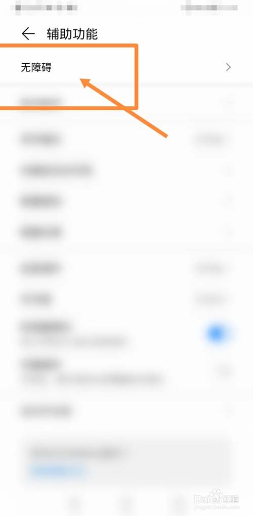 在更多设置页面中,点击页面上的无障碍,如下图所示: