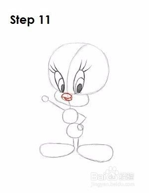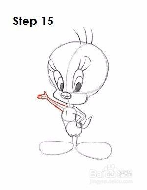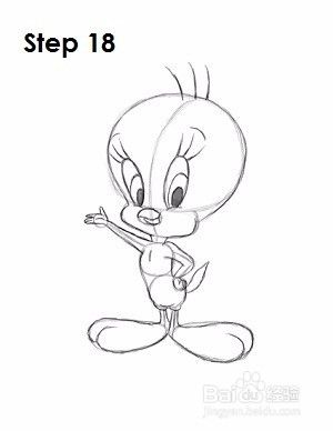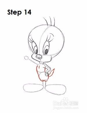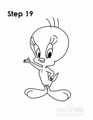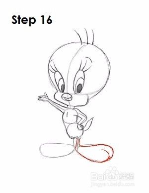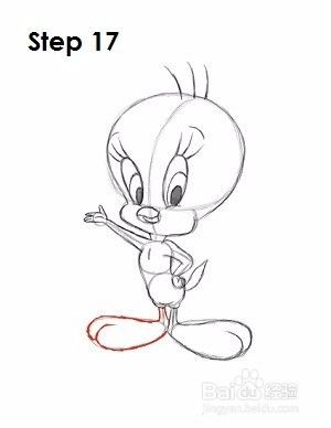 第17步:使用与右脚相同的技术绘制左脚。不要忘了绘制Tweety Bird的脚趾!