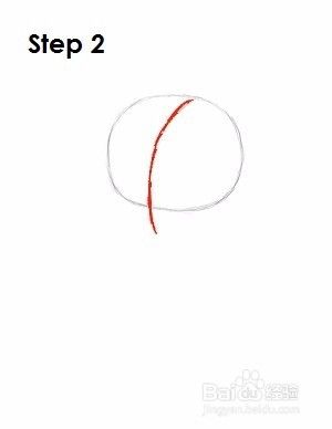 第2步:在椭圆形内部画一条垂直线,将形状分成两半。绘制这条线,使其跟随椭圆形的轮廓(即稍微弯曲),并在椭圆外延伸一点点。这是一条建筑线,可帮助您稍后放置Tweety Bird的功能。