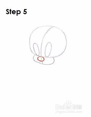 第5步:直接在椭圆下面画一个更小的椭圆形作为Tweety鸟嘴的指南。