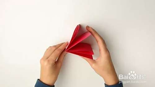 把纸折成书的形状。把纸竖起来,让开口的那一边朝上。然后把两端向中间推,使中间开口的两边彼此分开。