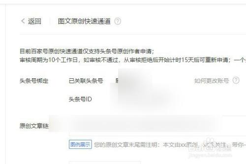 在功能权益里面,选择图文原创标签右侧的快速通道申请。
