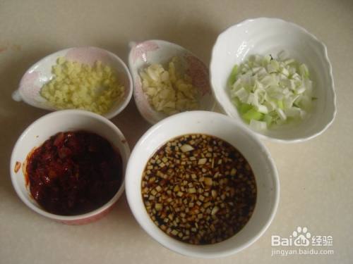 葱切碎,姜、蒜切末。 郫县豆瓣酱用剪刀剪碎。 一勺生抽、两勺醋、两勺糖,少许清水倒入碗内,放入少许姜末、蒜末。 调少许水淀粉。