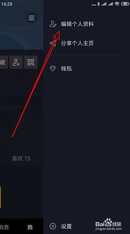 然后在弹出的菜单中点击编辑个人资料菜单项。
