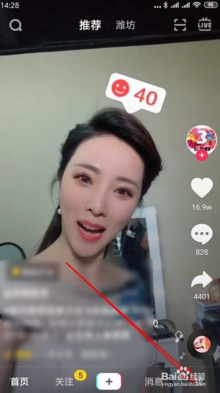 然后在打开抖音软件主界面,点击右下角的我选项卡。