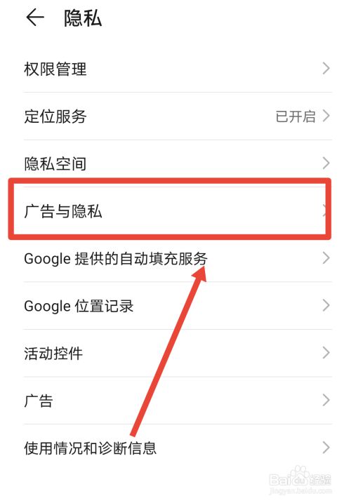 3.在隐私列表中,找到最下方【广告与隐私】,点击打开进入下一界面