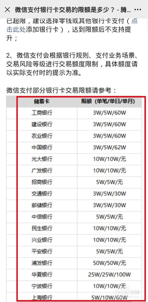 这里就可以看到各个银行卡的单笔限额,单日限额和单月限额