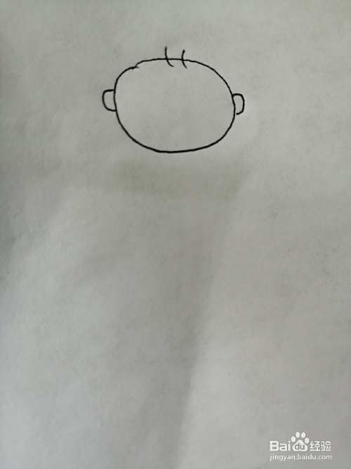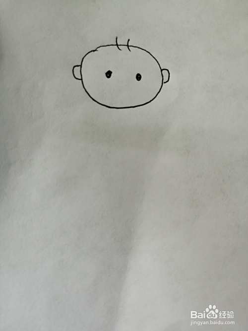第三步,接着画出可爱的小婴儿的两只可爱的小耳朵。
