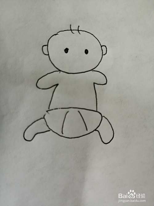 第七步,最后把可爱的小婴儿的两条小腿画出来。可爱的小婴儿就画好了。