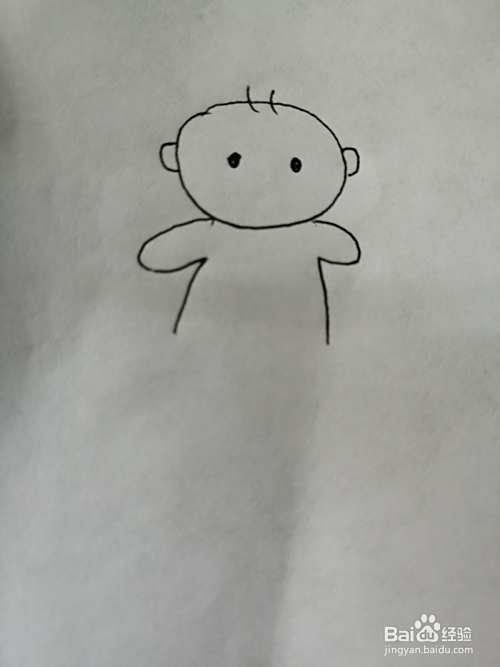 第二步,接着继续画出可爱的小婴儿的两根可爱的头发。