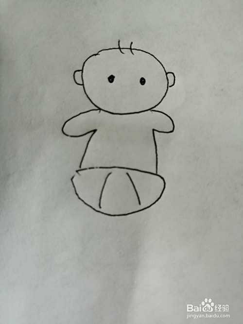 第六步,接着画出可爱的小婴儿的身上的小婴儿裤子。