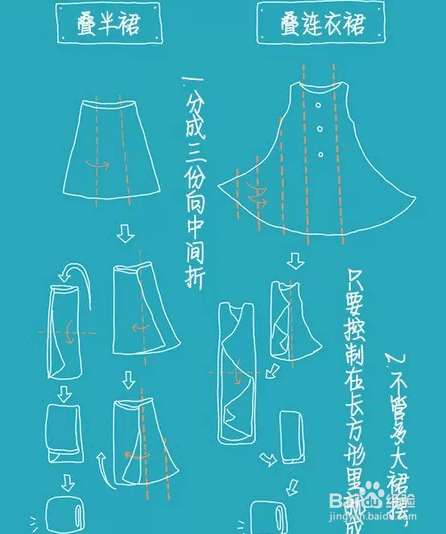 还有半裙和连衣裙的整理方法,长短裤的整理方法,如下图所示。