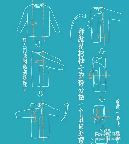 首先我要说的是,不规则形状衣服的整理方法。如下图的样子,具体的要看图哈。