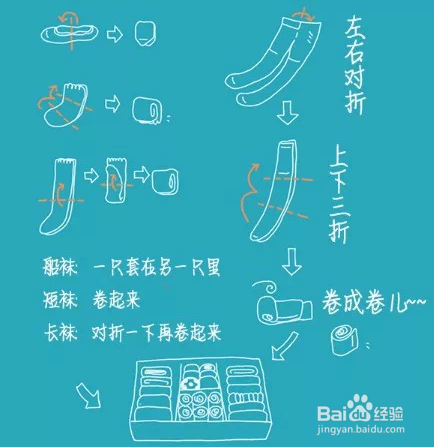 还有就是袜子及零碎物件的整理方法,如下图所示。