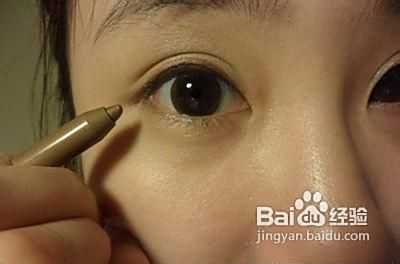 由于是日常生活妆,这里眼线笔我们选择棕色的更加自然。沿着睫毛根部小心的描画眼线,内双的美眉可适当加粗线条。