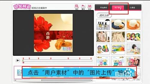 点击用户素材中的图片上传按钮,上传产品的图片和LOGO