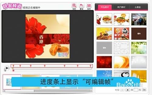 进度条上显示可编辑帧,每一帧下面都对应可编辑的元素,可以更换LOGO、背景图片、插入产品图片以及文字的编辑等等