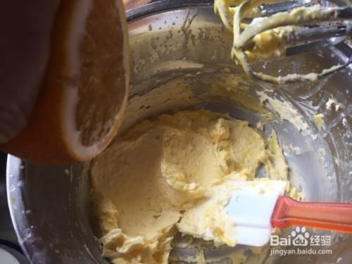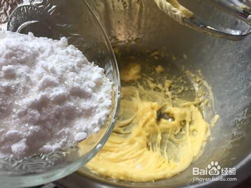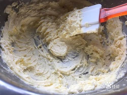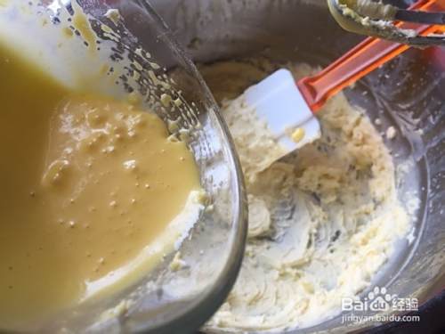 再把蛋黄液加入到黄油中,蛋黄液最好先搅拌下,这样方便融合;