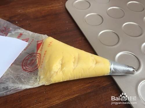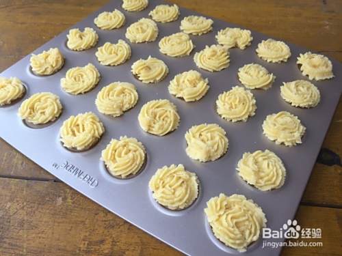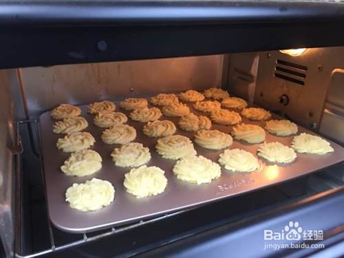 再烤盘上,挤上曲奇饼干的胚;预热烤箱,180度,上下火;