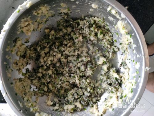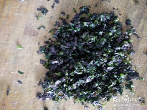 苏子叶洗净后切沫,猪肥肉少量切沫