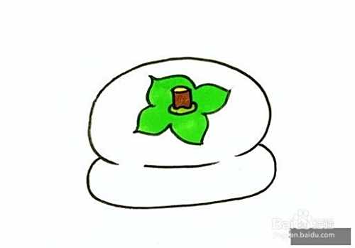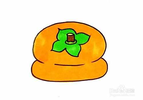 4、果肉部分涂上橙色,这样,柿子的画法就完成了。