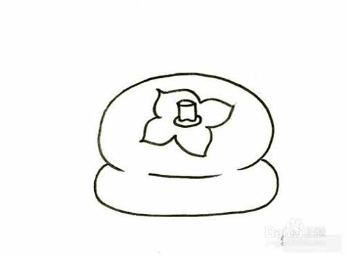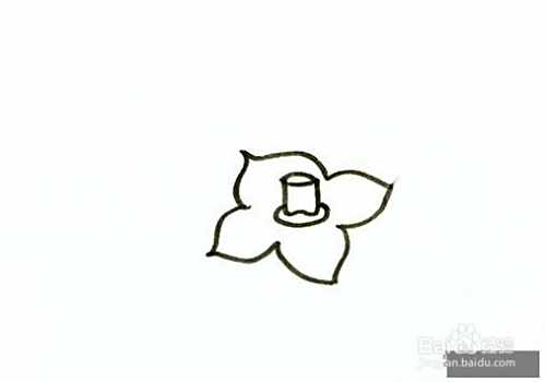 1、先画上一个花朵形状的四边形,上面有四个尖尖的角,上面还有一小节树枝。