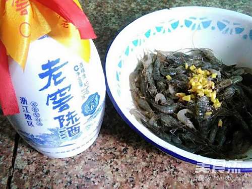 2白酒姜料酒盐拌匀将虾腌制十分钟