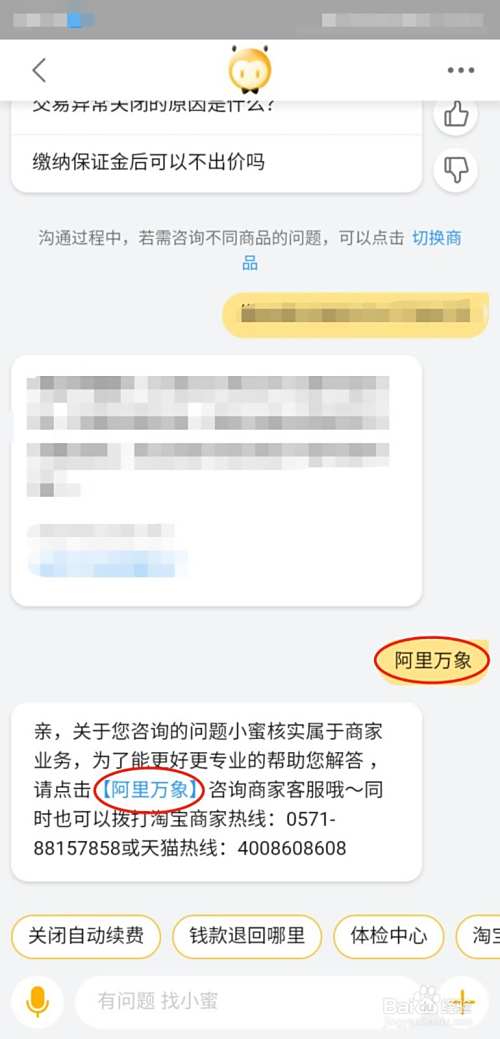 在对话框中输入“阿里万象”,在回复的信息中选择“阿里万象”,进入阿里万象对话框。