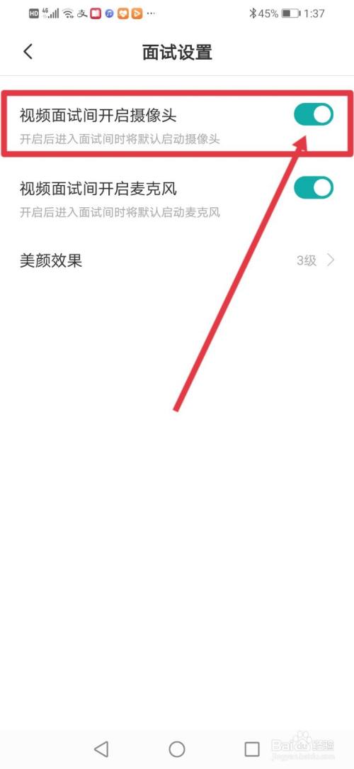 进入面试设置,然后把【视频面试间开启摄像头】的按钮开启即可。