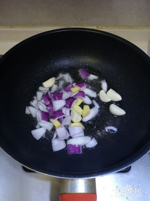 锅里放油,比平时多炒。将洋葱、生姜、大蒜和洋葱在油热下翻炒。