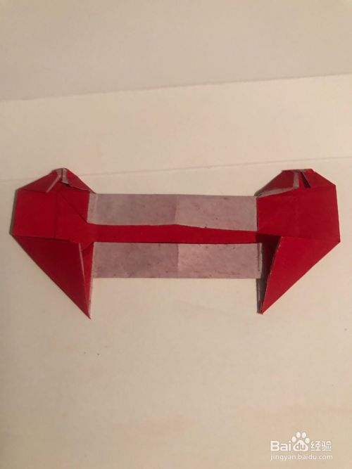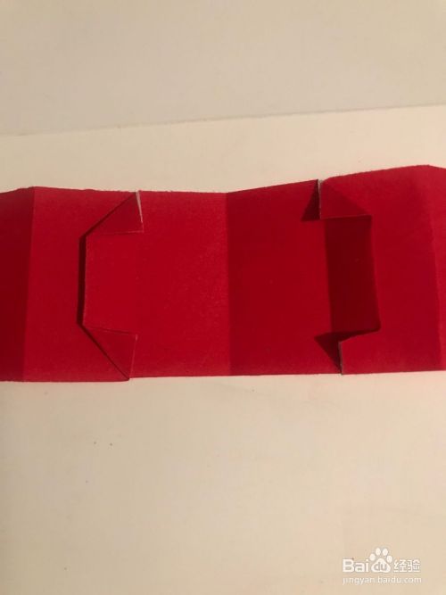 第一步 用18厘米长X4.5厘米宽的长方形红色彩纸一张 先把它竖起来 从下向上对折取开 然后把上头和下头都向中线对折