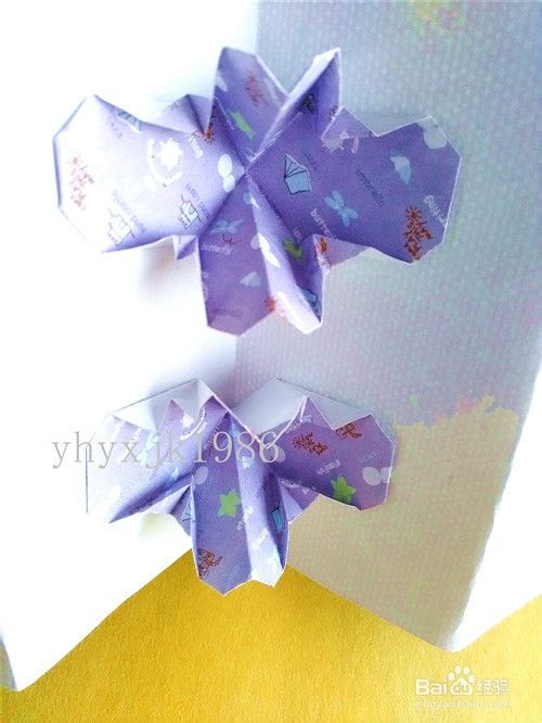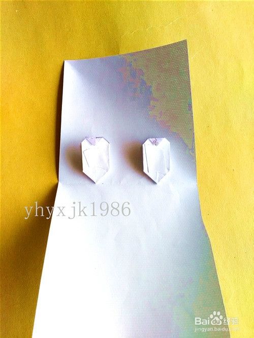 下面我们将折好的小花用双面胶粘在卡片或者纸上,小花两面都要贴上双面胶,这里我选择的纸比较大,所以我折了两朵小花