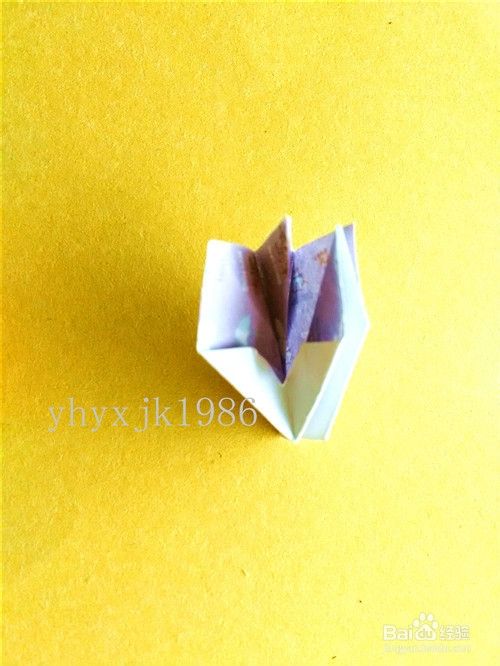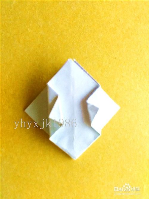 折出来的样式如图,将头顶的四个小角都往下折,折一点点就可以了