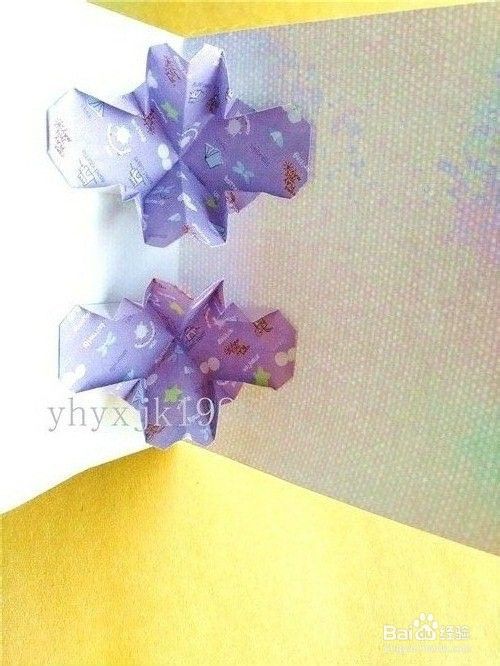 粘好后,将卡片对折后打开,这样小花就弹出来了